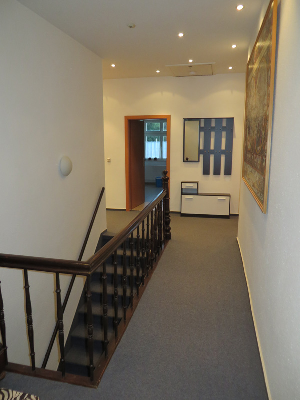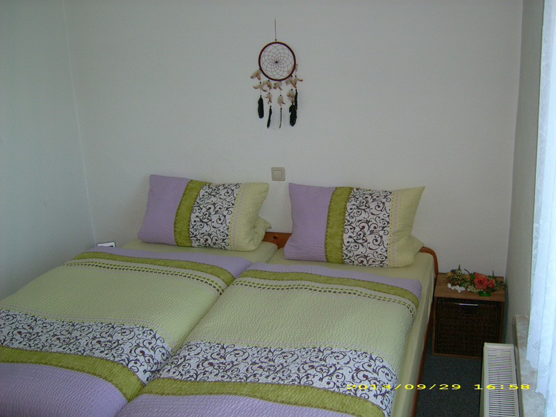 Die Ferienwohnung befindet sich im 1. Obergeschoss mit seperatem Eingang, wodurch sie leider nicht barrierefrei erreichbar ist. Die Räumlichkeiten sind 2013 neu renoviert wurden. In alle Zimmer gelangt tageslicht, was sie hell und gemütlich macht. Die Größe der Wohnung beträgt 100 m². Aufgrund den 2 separaten Schlafzimmern ist unsere Ferienwohnung sowohl für Familien, Freunde und Monteuren von bis zu 5 Erwachsenen eine gute und preisgünstige Alternative zu einem Hotel oder Motel. Eine Aufbettung für 1 Kleinkind ist im Schlafraum 1 möglich.