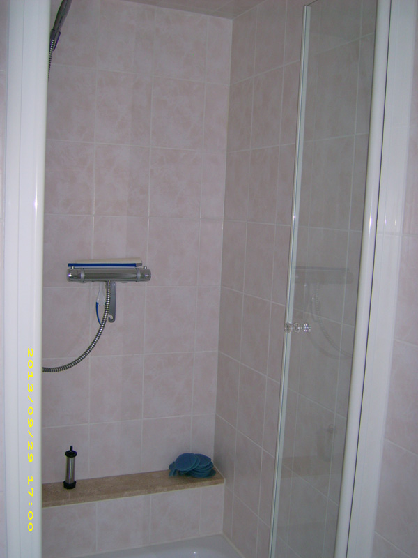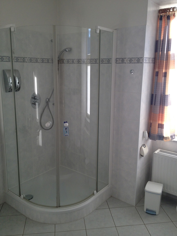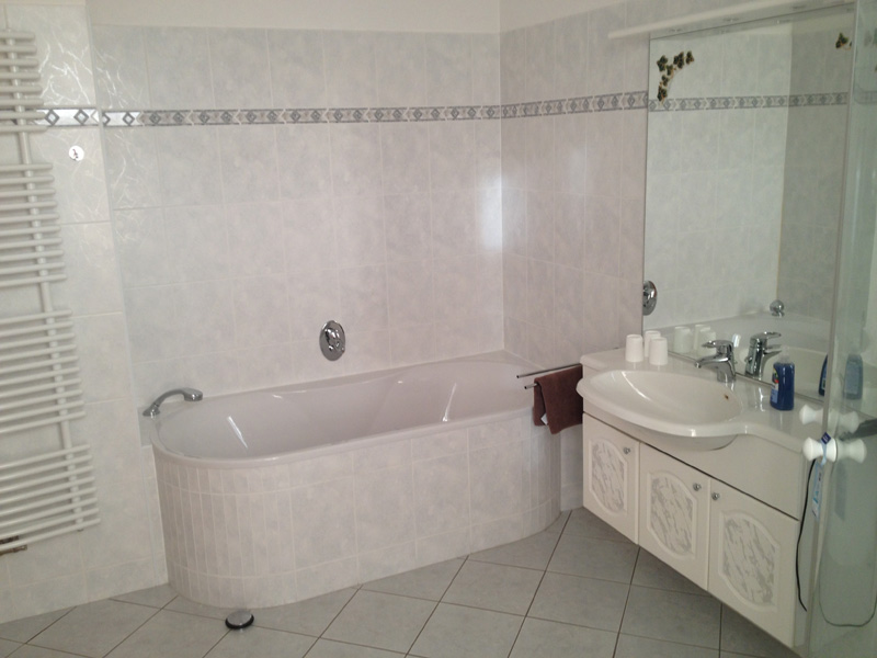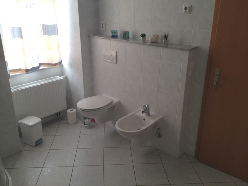 mit Dusche und Wanne, WC und Bidet, Handtuchtrockner sowie Fön
