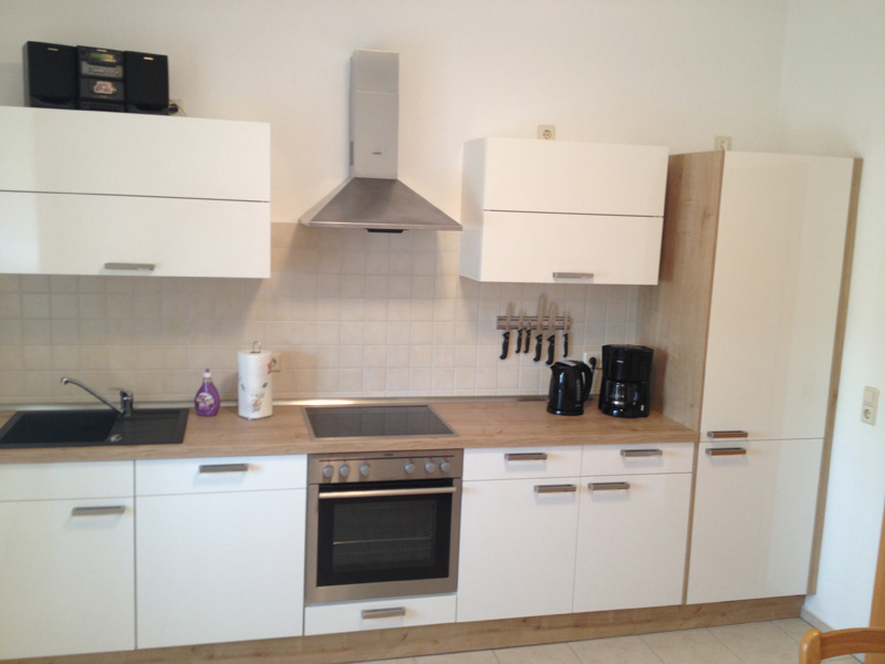 mit Sitzeckbank, E- Herd (Ceranfeldplatten), Kühl- und Gefrierschrank, Spülmaschine, Kaffemaschine, Toaster, Wasserkocher und Stereoanlage